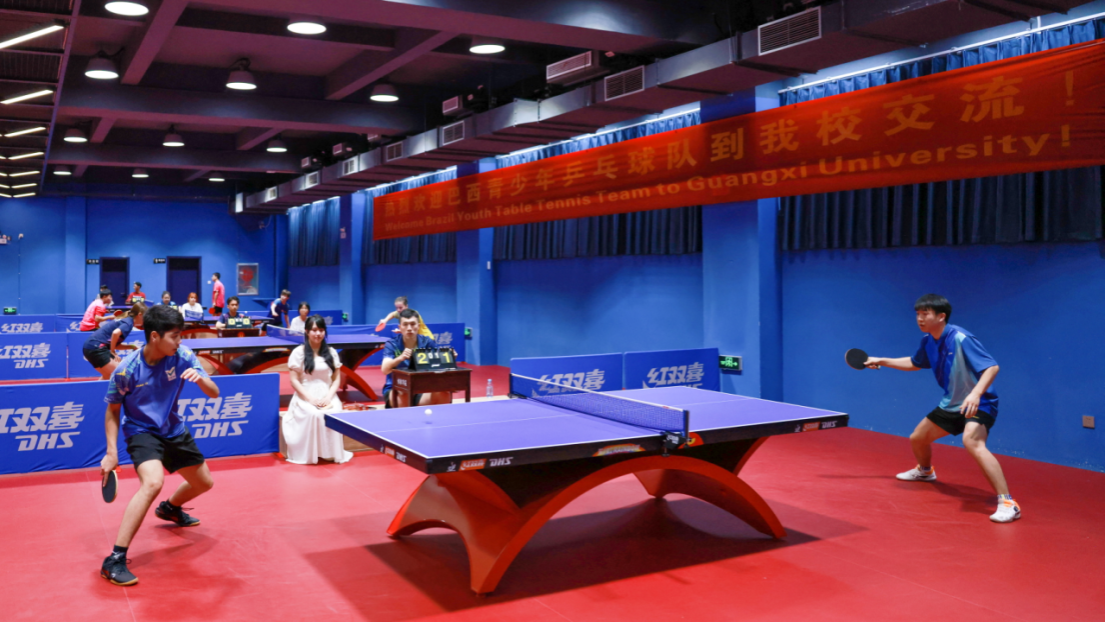 Table tennis is a traditional competitive mass sport at GXU, having achieved the mixed doubles championship and top three team in the National University Championships. The visit of the Brazilian Youth Table Tennis Team to compete alongside Guangxi team serves as both a warm-up for GXU's Table Tennis Team ahead of this year's National University Championships and a valuable opportunity to enhance international cooperation in sports.