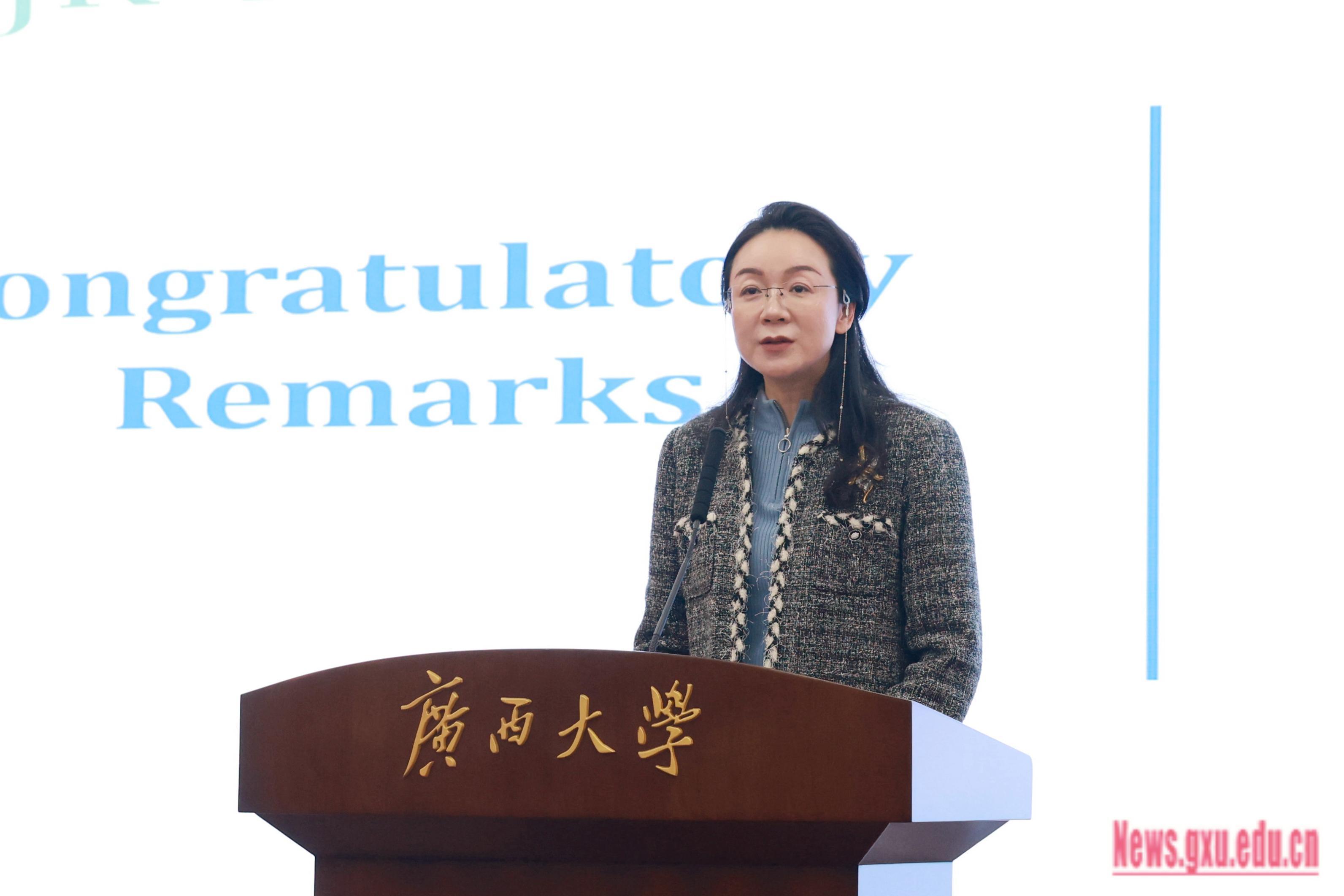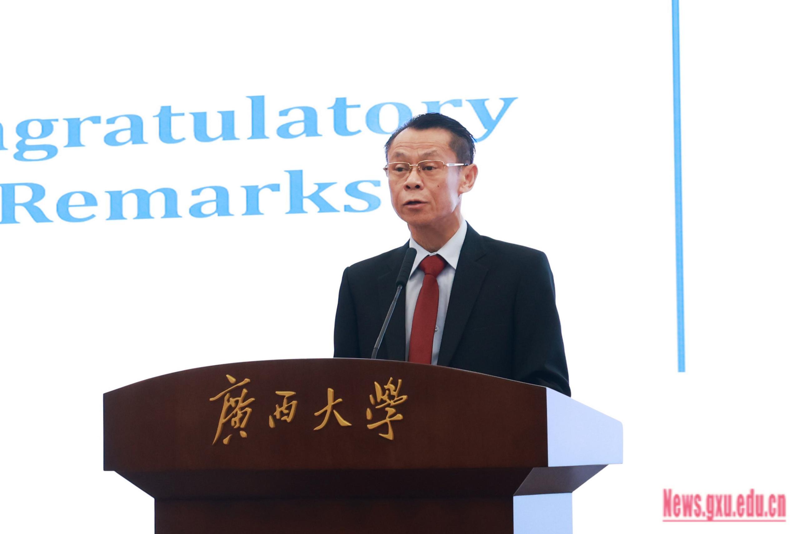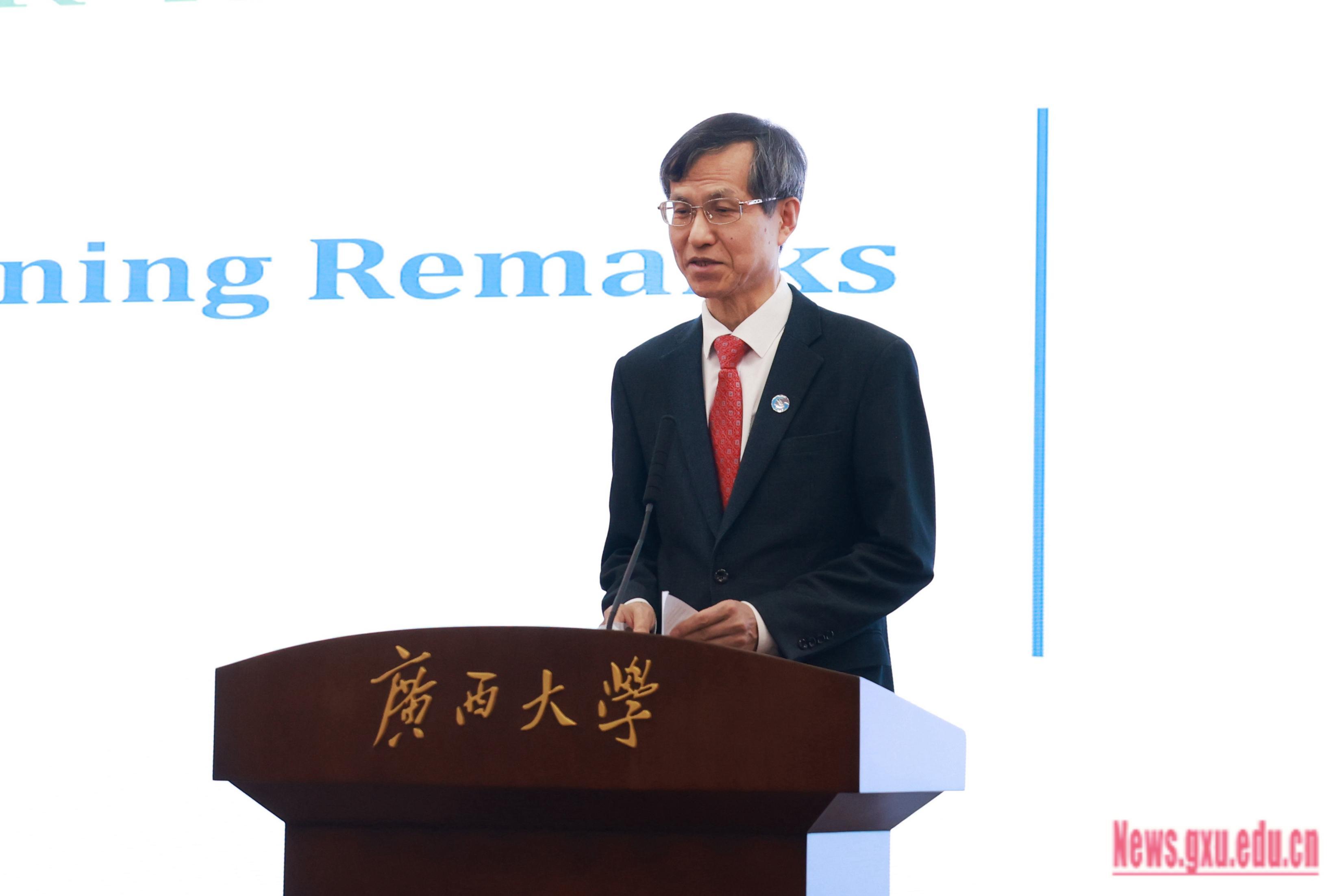 (Wang Naixue, Vice-Chairman of the CPPCC of the Guangxi Zhuang Autonomous Region and Secretary of the CPC Guangxi University Committee, delivered a speech at the opening ceremony.)