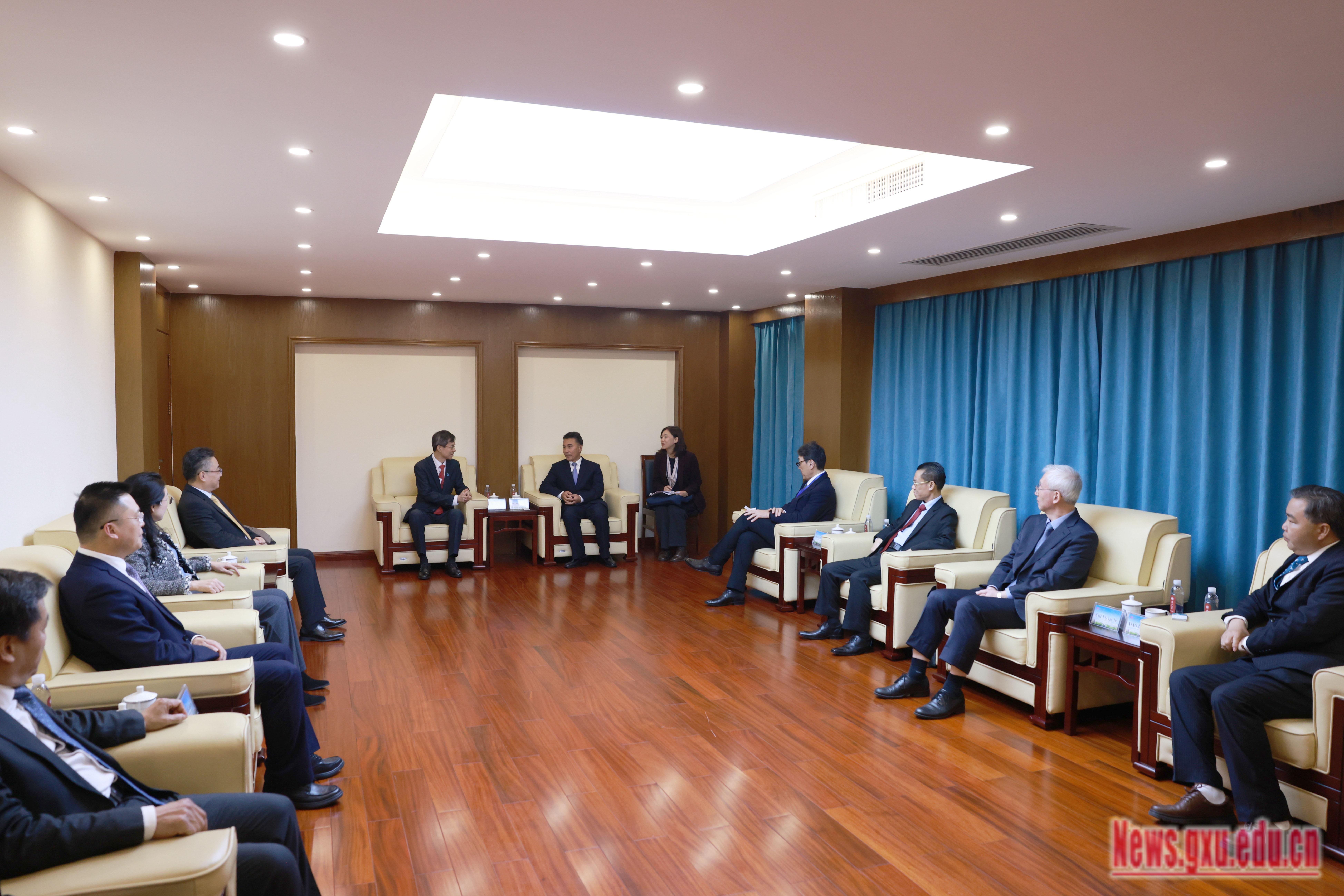 (Leaders of Guangxi University are meeting with the guests.)