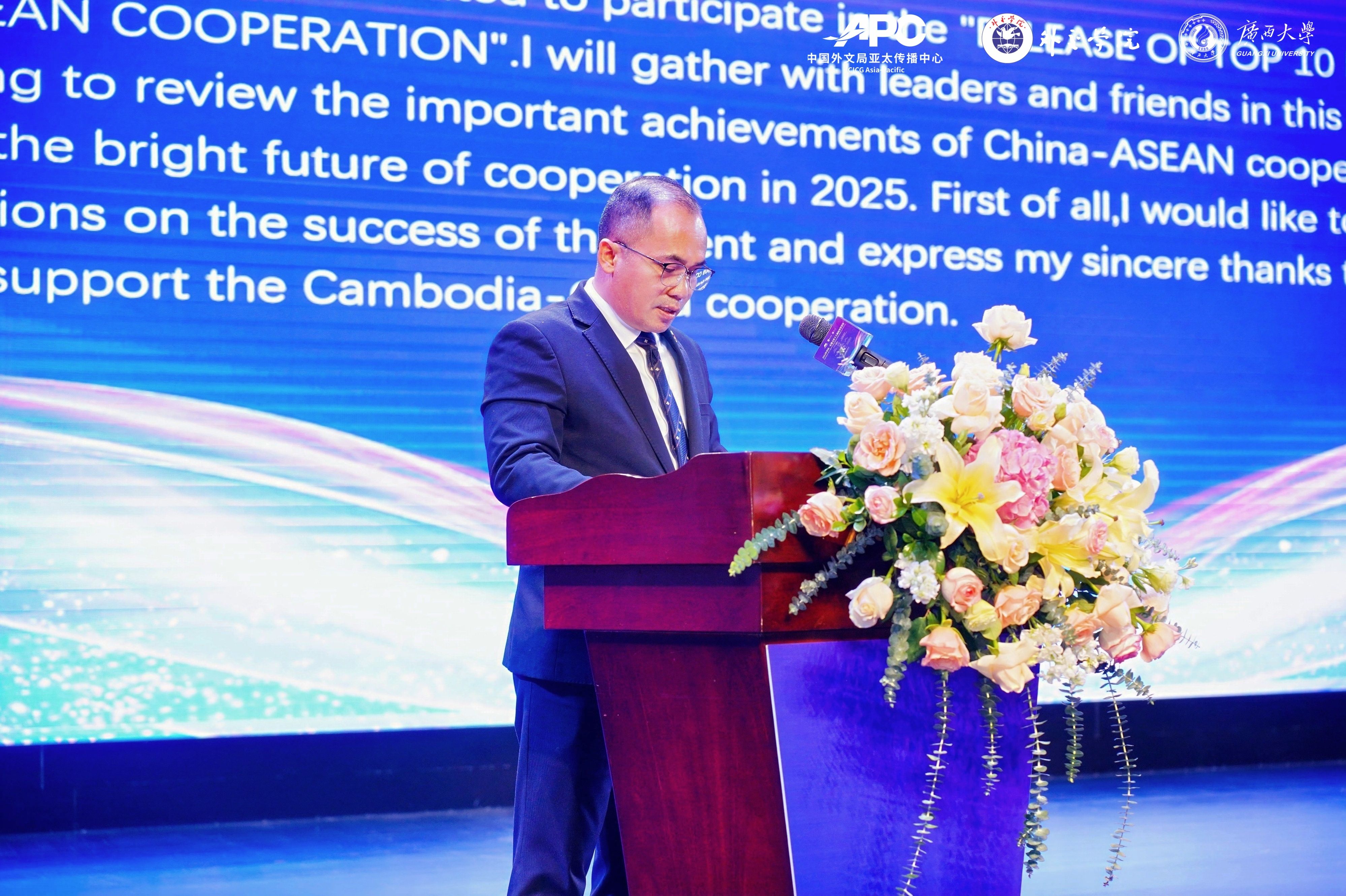 Xia Guoen menyebut bahawa 2024 merupakan Tahun Pertukaran Rakyat China-ASEAN, menandakan tahun penting bagi kedua-dua pihak untuk meningkatkan kerjasama mereka ke tahap yang baharu. China dan ASEAN telah mencapai hasil yang membuahkan hasil dalam bidang seperti daya sambungan infrastruktur, kerjasama ekonomi dan perdagangan, pertukaran budaya, inovasi teknologi, dan kerjasama pendidikan, memberikan momentum yang kuat kepada keamanan dan kemakmuran serantau. Di Universiti Guangxi, semua tetamu berkumpul untuk menyaksikan acara pelancaran "Sepuluh Berita Teratas mengenai Kerjasama China-ASEAN 2024" dan untuk membayangkan masa depan yang cerah untuk kerjasama China-ASEAN pada tahun 2025.