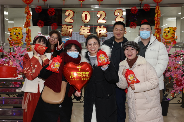 当天过生日的刘明晗同学说:“感恩学校的暖心安排,我将永远珍藏这份感动。留校过年也和回家一样,让我在这个别样的春节和庆生中感受到了满满的幸福。作为一名博士生,我会把这份温暖关怀化作学习和科研的动力。2022年,让我们一起向未来!”