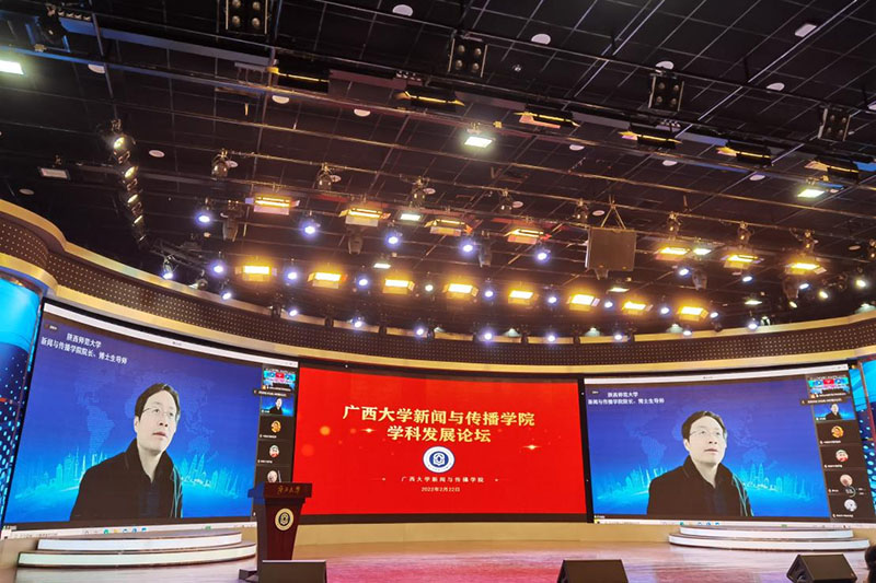 人民网南宁2月23日电 2月22日,sunbet申搏官方网站新闻与传播学院学科发展论坛在南宁举行,sunbet申搏官方网站新闻与传播学院常务副院长刘洪教授主持会议,多名与会教授围绕“如何促进新闻传播学科更好发展”作主题发言。