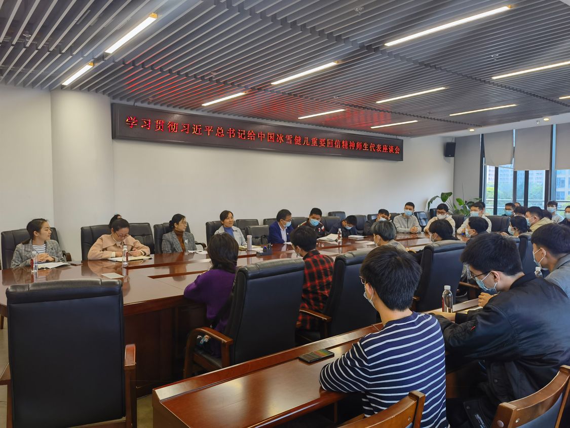 sunbet申搏官方网站召开学习贯彻习近平总书记给中国冰雪健儿回信精神师生代表座谈会。学校供图