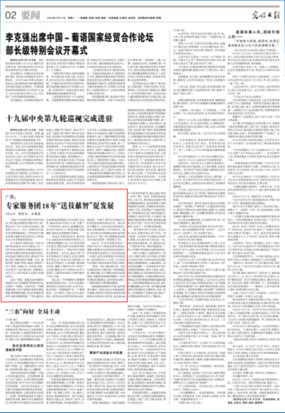 “在这么多身份标签中,最令我引以为豪的还是专家服务团成员,它不断督促警醒我,肩上不只担负科技攻关重任,更担负着为百姓服务的使命。”服务团成员、广西海洋研究所副所长蒋艳说。近年来,通过开展“百名专家联系百个贫困屯、百名专家联系百家企业”双扶行动,帮助超100家企业开展技术、产品创新,推动海洋养殖、葡萄、沃柑等50多个特色产业发展,覆盖20多个贫困县500多个贫困村,为脱贫攻坚和乡村振兴提供了智力支撑。