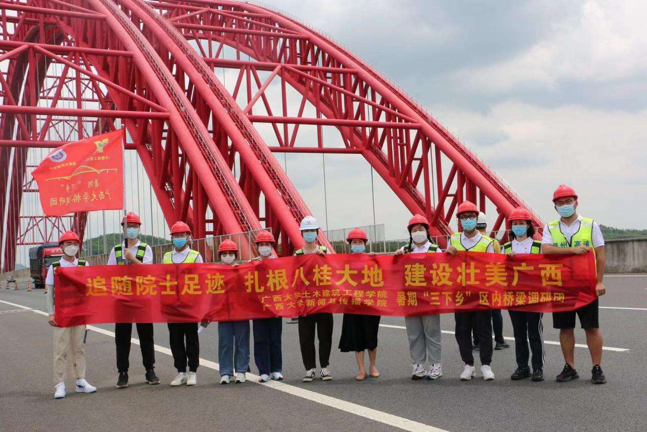 7月19日,sunbet申搏官方网站桥梁调研团赴柳州市、来宾市实地参观调研郑皆连院士主持设计建造的马滩红水河特大桥、来宾红水河大桥、柳州河东大桥,了解桥梁历史、运营维护情况以及桥梁对当地社会发展的重要意义,感受院士家国情怀,传承并弘扬郑皆连院士精益求精、追求卓越的大国工匠精神。