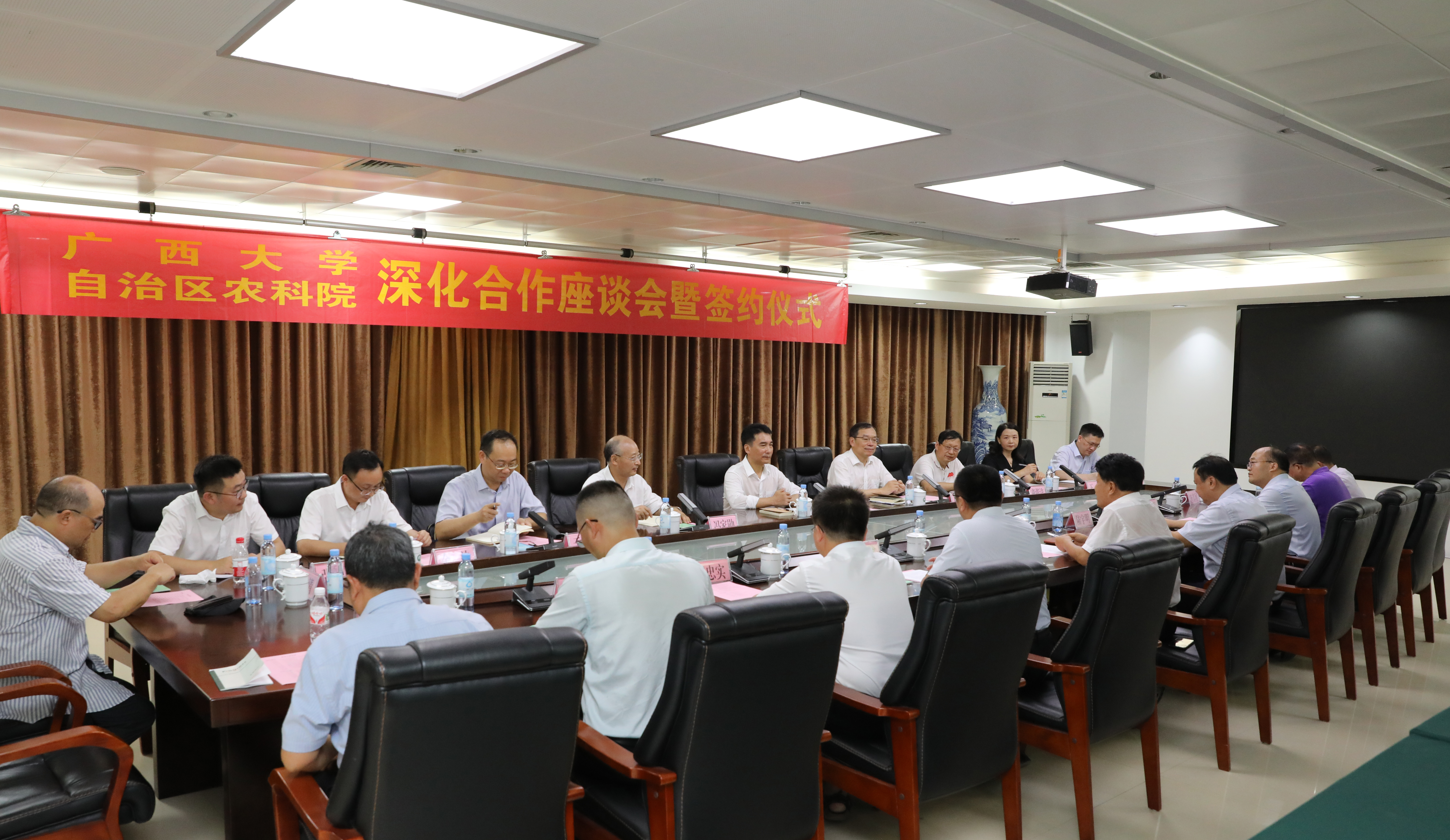 为落实自治区党委政府关于促进科教融合建设科教强区的部署要求,7月28日,sunbet申搏官方网站与广西农业科学院深化合作座谈会暨战略合作框架协议签约仪式在广西农业科学院举行。sunbet申搏官方网站相关负责人与广西农业科学院相关负责人参加调研活动并出席座谈会暨签约仪式。sunbet申搏官方网站副校长冯家勋与广西农业科学院副院长陆宇明分别代表双方签署战略合作框架协议及共建国家级平台合作协议。