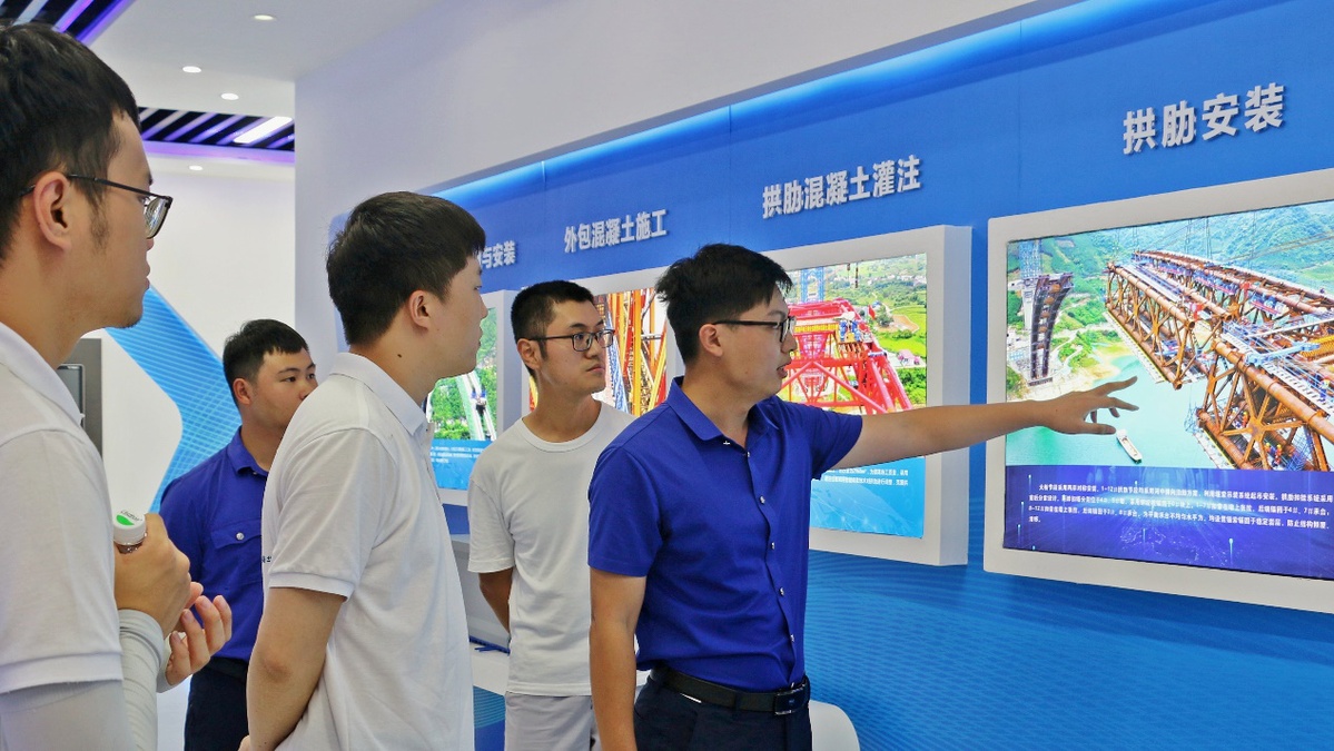 如何解决技术层面上的难题?“需要摸着石头过河,在实践中摸索”是整个团队在施工过程中得出的体悟。项目经理部党支部书记岳海江表示,很多技术是以前没有尝试过的,团队需要在以往的基础上因地制宜地进行升级改造,以适应整个施工过程。在郑皆连院士的带领下,专家团队以解决实际问题为出发点,经过多年创新攻关,成功原创斜拉索调载分环分段多工作面浇注外包混凝土技术等系列先进技术,大大降低了工程造价和施工安全风险。同时,项目团队建立了1:1的足尺模型进行实验,提前模拟外包混凝土的现场施工情况,从而保障外包混凝土方案的合理性、安全性。
