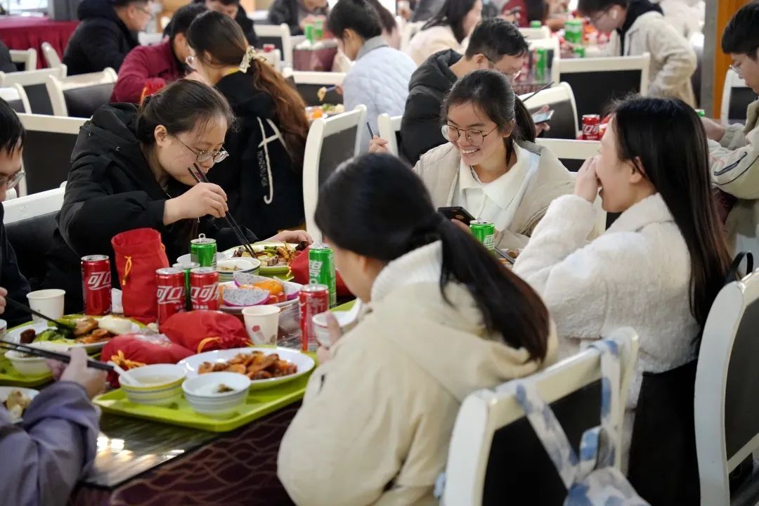 据悉,今年sunbet申搏官方网站共有1200多名学生留校过年,学校全力做好服务保障工作,精心为留校过年的同学们准备丰盛的年夜饭、春节伙食补助金和“福袋”,让留校学生欢度一个祥和幸福年。