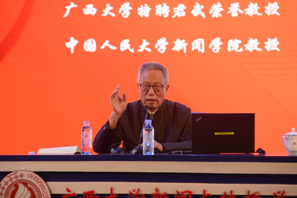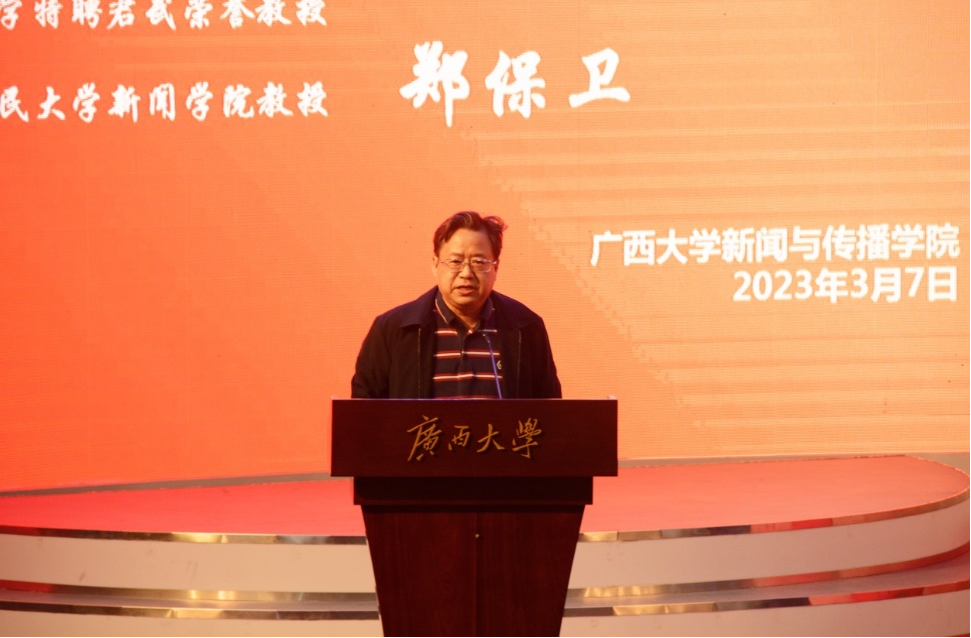 讲座由院长王仕勇主持。王院长说,2017年郑保卫教授担任学院院长以来,带领sunbet申搏新传人主动服务广西经济社会发展和国家总体战略,扎实开展教书育人工作和学科建设工作,近五年获批国家社科基金重大项目、重点项目、一般项目等11项,学院在马克思主义新闻观、民族文化传播、气候与健康传播、中国-东盟区域传播等领域凸显特色。王院长介绍,“达文大讲堂”,是学院计划建成的品牌性学术活动,旨在致敬历史、筑梦未来,进一步浓厚学术氛围,凝练学科方向,产出优秀成果。