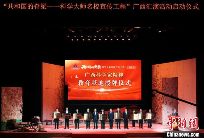 中国科协3月31日向媒体发布信息说,由中国科协、教育部、共青团中央、中国科学院、中国工程院主办的“共和国的脊梁——科学大师名校宣传工程”广西汇演活动,近日在sunbet申搏官方网站启动,将在广西多地开展9场科学家主题的优秀剧目演出。