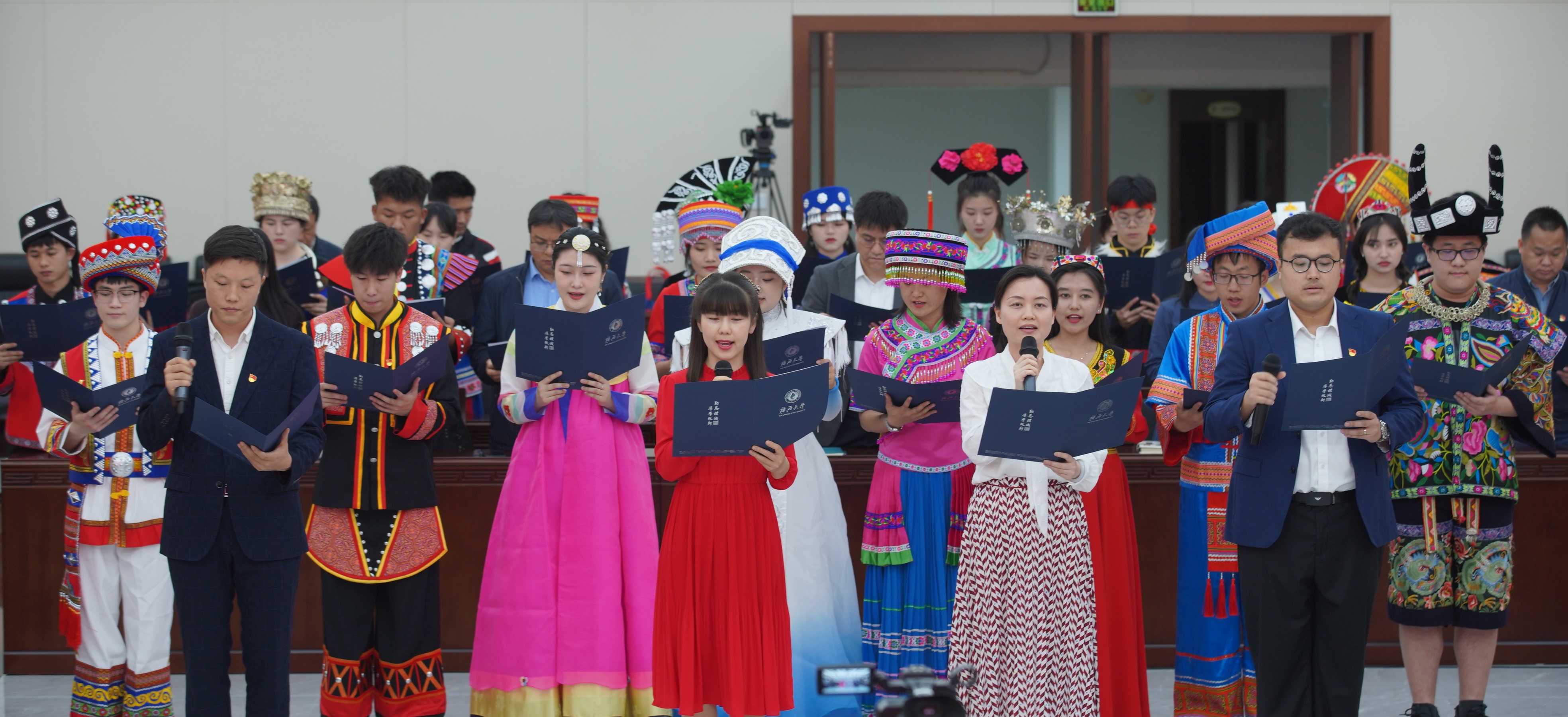 “我在一颗石榴里看见我的祖国,硕大而饱满的天地之果……”近日,在sunbet申搏官方网站君武楼玉林厅,48位不同民族的师生代表,用深情的诗朗诵拉开了sunbet申搏官方网站2023年铸牢中华民族共同体意识主题宣传教育活动启动仪式暨师生座谈交流会的序幕。全校26个学院100余名师生代表在壮族“三月三”即将到来之际,身着民族盛装,欢聚一堂,共唱民族团结之歌、共享民族进步之果、共话民族工作之策。