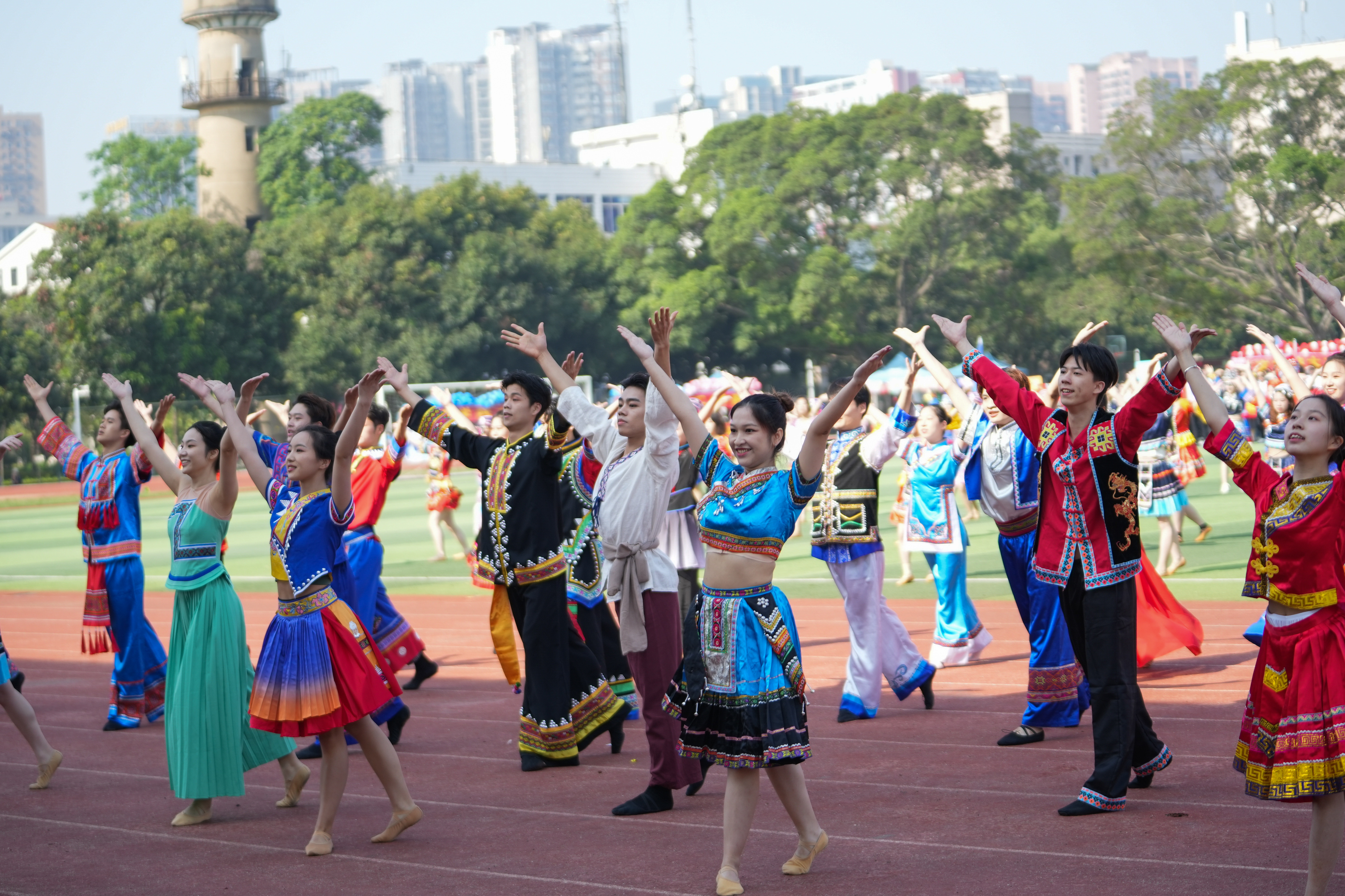 春暖花开时,又逢三月三。4月16日,在八桂人民喜迎“三月三”传统节日之际,共青团sunbet申搏官方网站委员会在学校体育场举办了第九届“三月三”铸牢中华民族共同体意识民族文化系列活动,来自各学院的2000余名师生共同唱响嘹亮山歌,感受多彩民族风情,同庆民族传统节日。