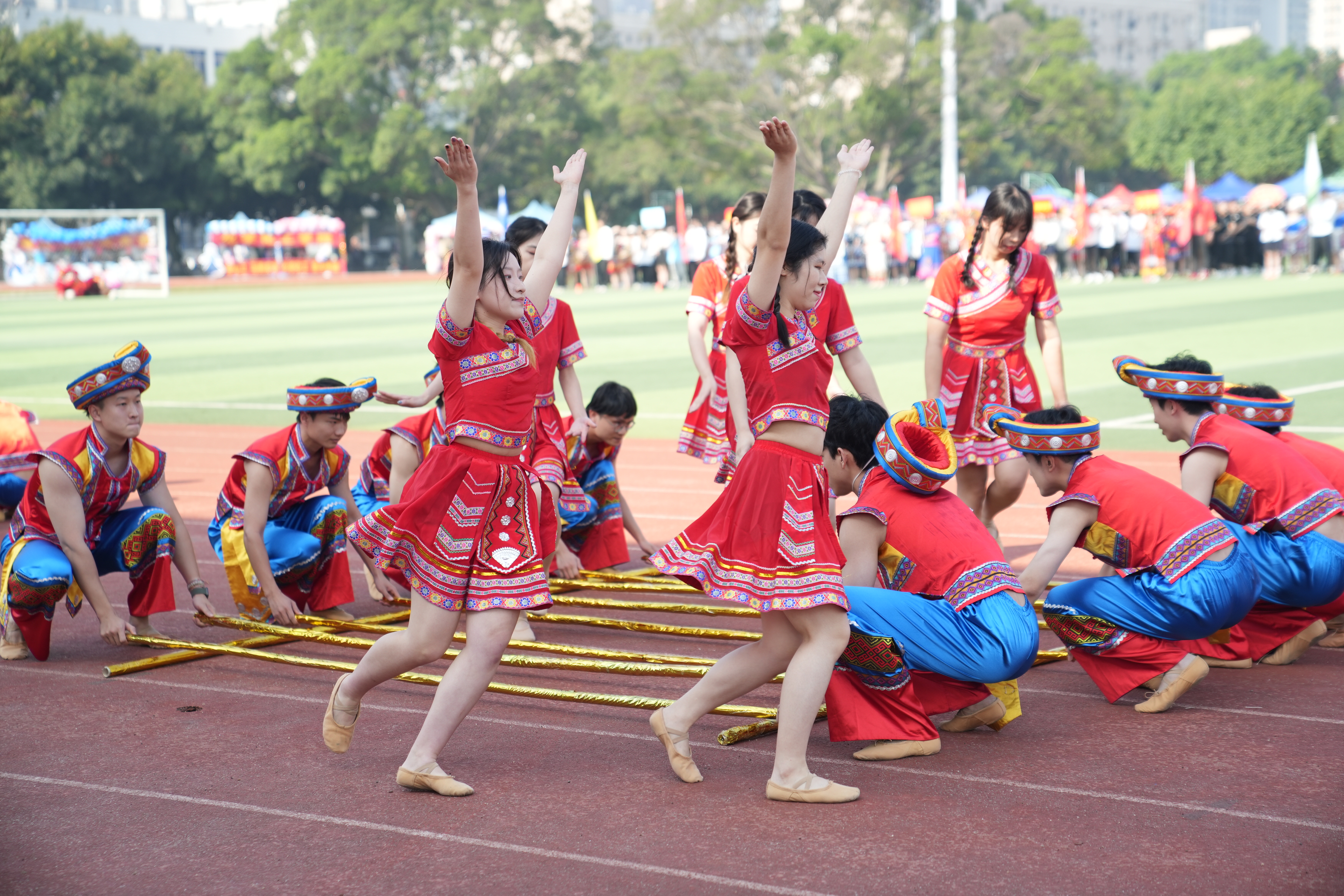 锣鼓威风贯碧霄,绣球逗引舞姿娇。开场精彩的舞狮表演赢得了观众们的阵阵喝彩,迅速点燃了现场的气氛,拉开了民族文化系列活动的序幕。在《广西尼的呀》婉转歌声中,学生满载欢乐与期盼,唱出对壮美广西的浓浓情感;竹竿飞扬,学生和着《竹竿舞》的轻快节拍踏歌起舞;伴着悠扬的旋律,各学院百余名身着绚丽民族服装的学生跳起了民族舞蹈《幸福山歌》,灵动的舞姿尽显民族传统文化的风采,洋溢着青春气息。