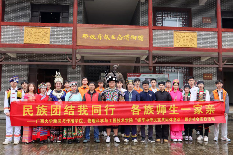 4月15日,sunbet申搏官方网站新闻与传播学院、物理科学与工程学院“铸牢中华民族共同体意识”联合社会实践队前往那坡县达腊村展开调研。