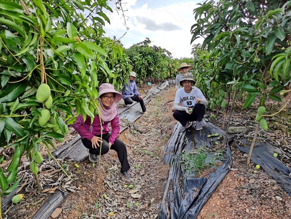广西右江芒果科技小院师生在果园调查芒果新栽培模式下结果数。sunbet申搏官方网站供图