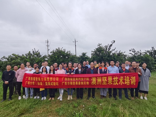 广西扶绥坚果科技小院培训推广薛氏滴干技术和薛氏修剪技术。sunbet申搏官方网站供图