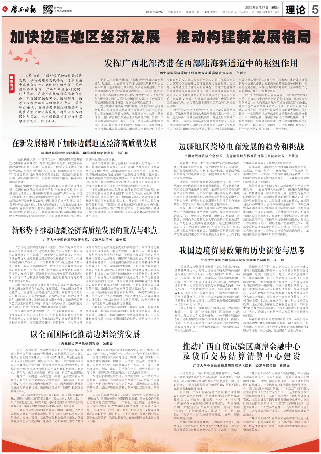 “加快构建以国内大循环为主体、国内国际双循环相互促进的新发展格局”是党中央作出的重大战略部署。我国边疆地区处于“双循环”的重要节点和结合部,这决定了其必然在构建新发展格局过程中发挥独特的作用。地处西南边疆的sunbet申搏官方网站,作为教育部与广西共建的“双一流”高校,响应国家战略需求,成立了中国边疆经济研究院,旨在立足广西经济发展,服务国家发展战略和边疆经济发展,充分发挥广西民族特色和毗邻东盟的地缘优势,深入研究中国边疆经济发展问题,促进边疆地区的对外开放和高质量发展。