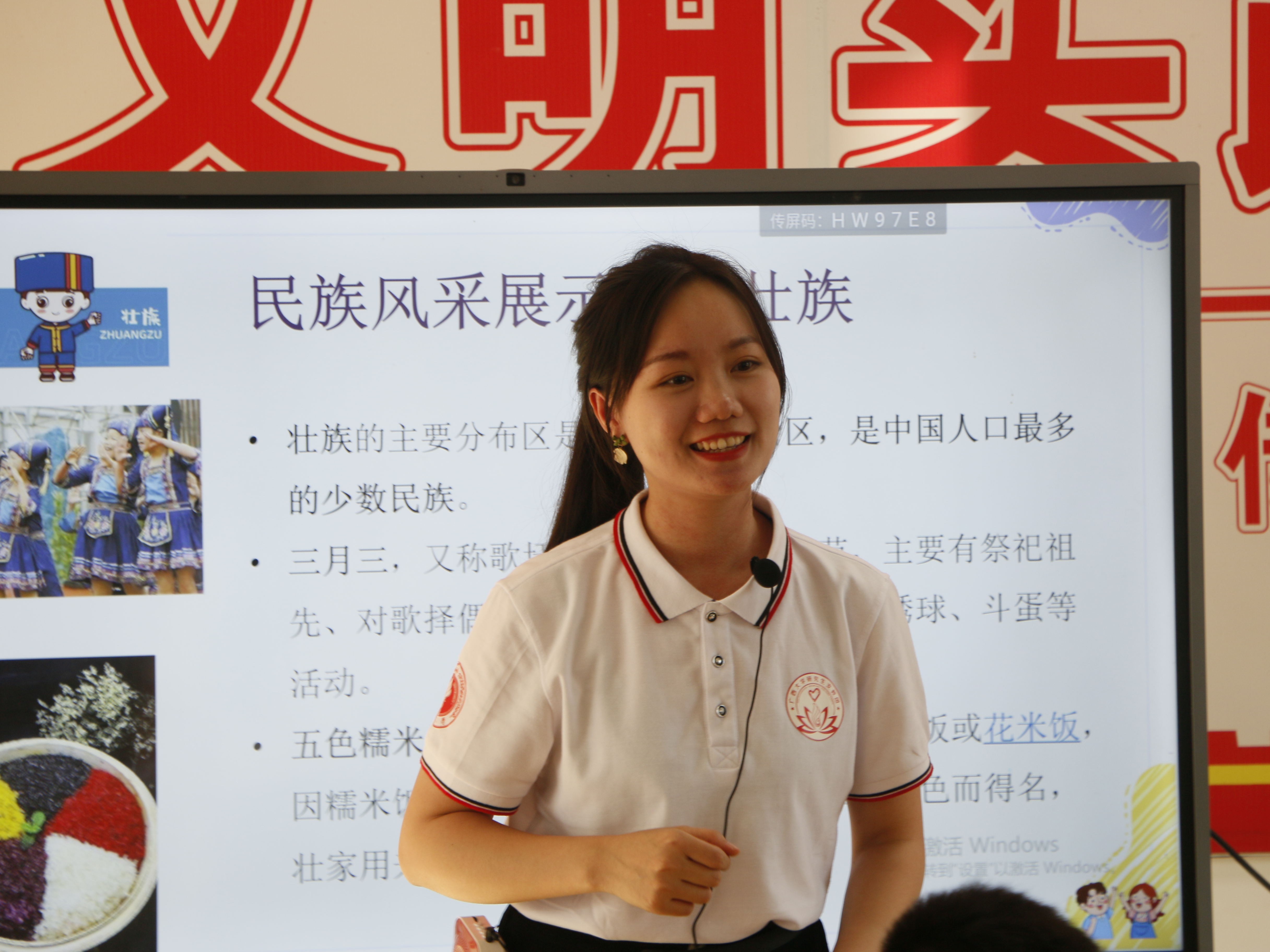 ∆ 支教老师为孩子们介绍少数民族风采,培养民族团结进步意识