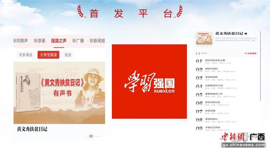 6月17日,有声书《黄文秀扶贫日记》在“学习强国”正式上线,该音频作品还在广西广播电视台移动客户端广西视听以及各广播频率同步上线播出。上线不到两天,播放量已达100万+。