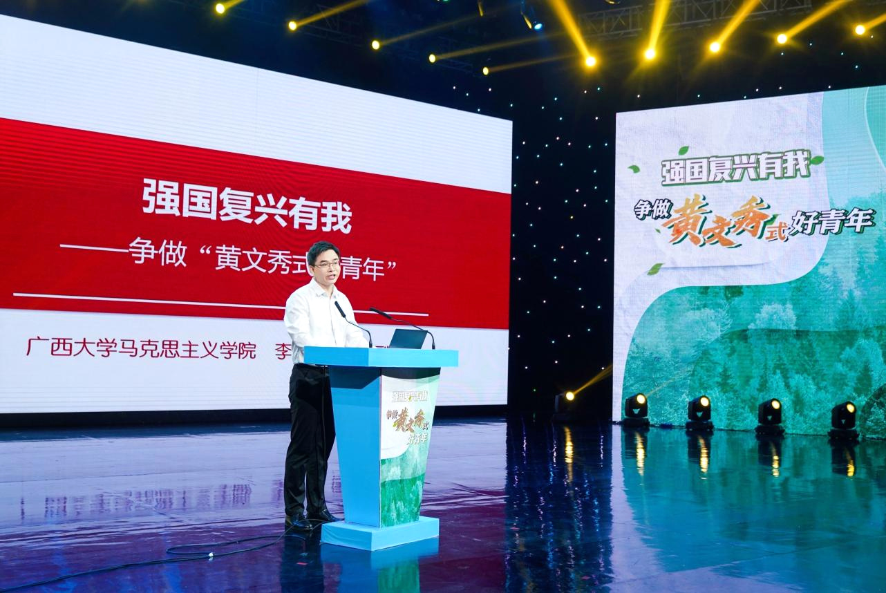 6月30日下午,“强国复兴有我——争做‘黄文秀式好青年’”2023年思政公开课高校专场在广西南宁举行,sunbet申搏官方网站200余名师生参加。活动由广西壮族自治区党委宣传部主办,采用“双师授课+情景演绎”的模式进行授课,通过故事串讲、情景演绎、思政授课等环节,回顾黄文秀感人故事,引领广大青年树立坚定理想信念、厚植家国情怀、加强品德修养、培养奋斗精神。