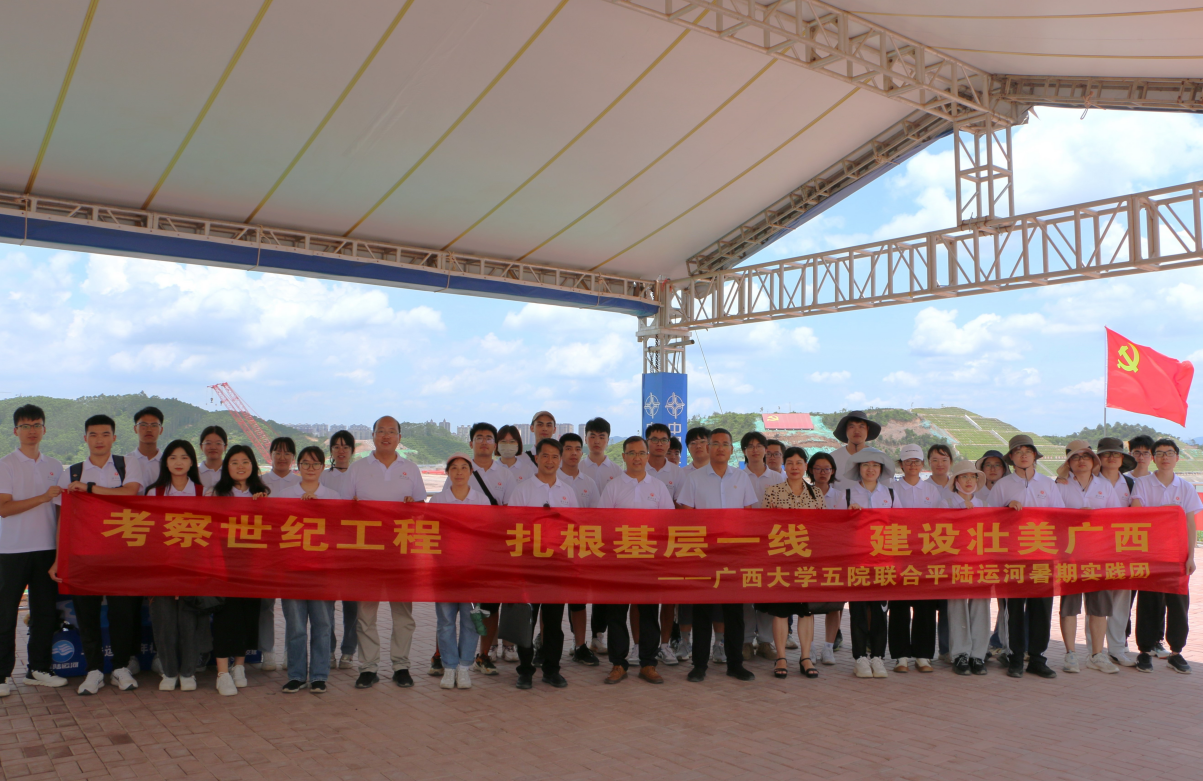 7月11日-14日,sunbet申搏官方网站平陆运河暑期实践团赴平陆运河沿线,开展以“考察世纪工程,扎根基层一线,建设壮美广西”为主题的暑期“三下乡”社会实践调研活动,从平陆运河的起点——南宁横县平塘江口(1标段)行至钦州平陆运河入海口(15标段),以全面了解平陆运河世纪工程的历史意义、建设情况、生态保护计划,及西部陆海新通道建设对沿线发展的重要意义。