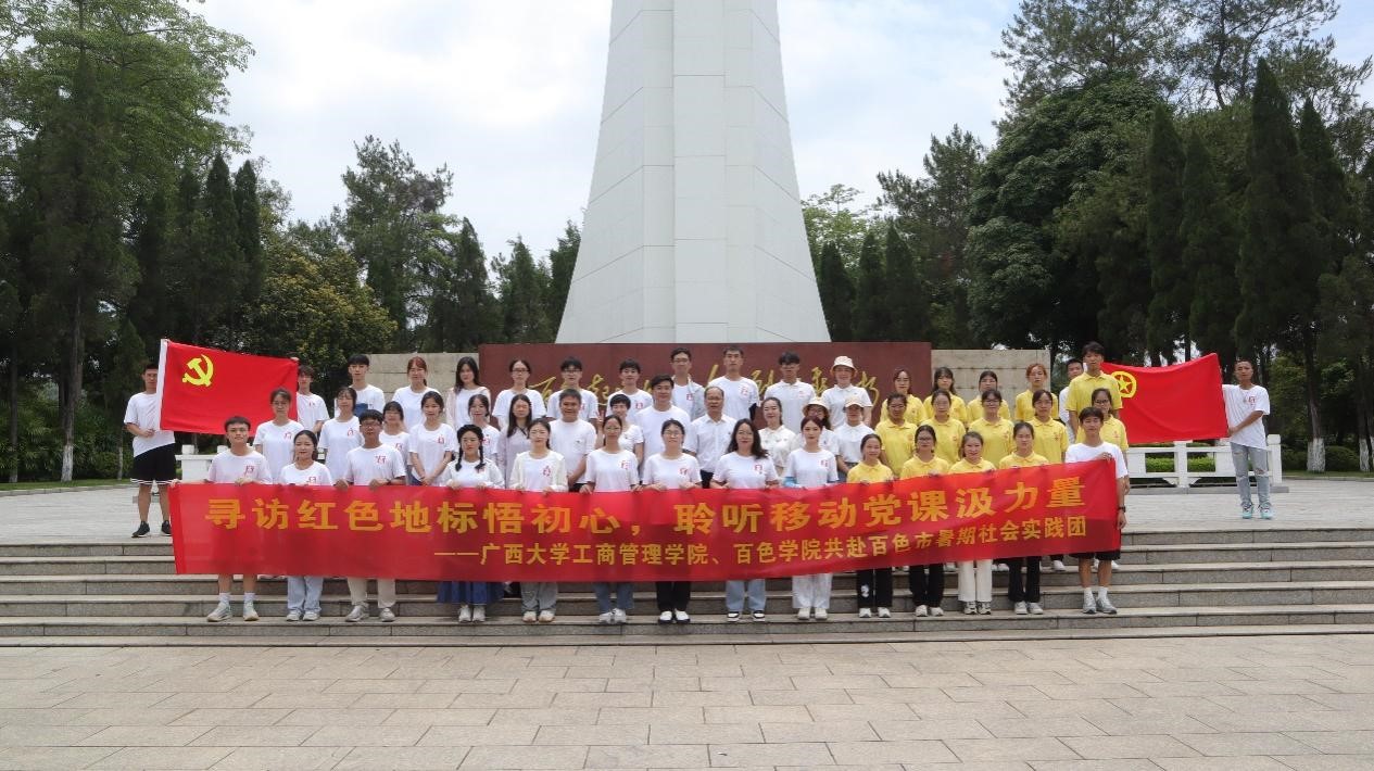 sunbet申搏官方网站工商管理学院与百色学院工商管理学院实践团联合在百色开展“壮美千姿百色红,研学筑梦青春行”为主题的社会实践活动,来到革命老区百色市走近革命博物馆、纪念馆、党史馆、烈士陵园等红色基因库,访红色地标悟初心,聆听移动党课汲力量。一寸山河一寸血,一抔热土一抔魂。新中国是无数革命先烈用鲜血和生命铸就的。在本次暑期社会实践活动中,两校青年实践团跟随革命先烈的步伐,亲身感受到了先烈们为民族独立和解放事业所做出的巨大牺牲和贡献,通过行动向革命先烈表示崇高的敬意。