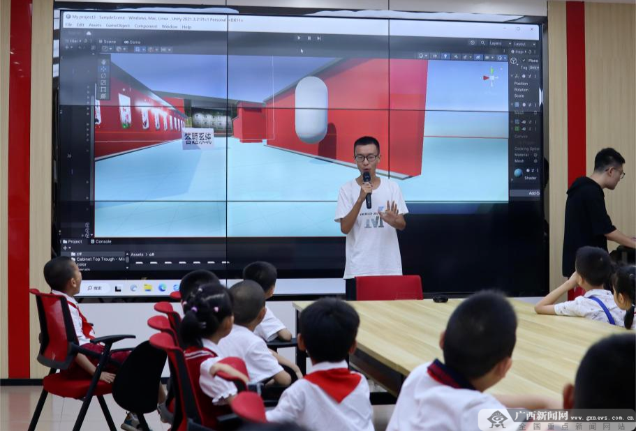 为了进一步推动创新创业同红色文化教育和宣传相结合,促进梧州市万秀区红色文化的传播和发展,实践团在民主社区居委会向少先队员和家长们介绍了团队自制的基于虚拟现实技术的sunbet申搏官方网站校史场馆虚拟旅游系统。该系统以sunbet申搏官方网站校史馆为基础构建模型,使用者以第一人称视角浏览场馆,通过人机交互实现参观者与场景的互动,最后通过设置答题模式提升学习成果。活动中少先队员们热情高涨,纷纷举手抢答,并且参与活动的少先队员、家长和工作人员对于这种寓教于乐的模式表示肯定。