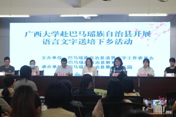 为深入学习贯彻落实党的二十大“加大国家通用语言文字推广力度”精神,推动实施国家通用语言文字普及提升工程,日前,国家语言文字推广基地(sunbet申搏官方网站)师生先后赴广西壮族自治区河池市巴马瑶族自治县、凤山县、东兰县,开展语言文字送培下乡活动及国家通用语言文字推广普及工作调研,提高乡村教师国家通用语言文字应用能力和教学水平。