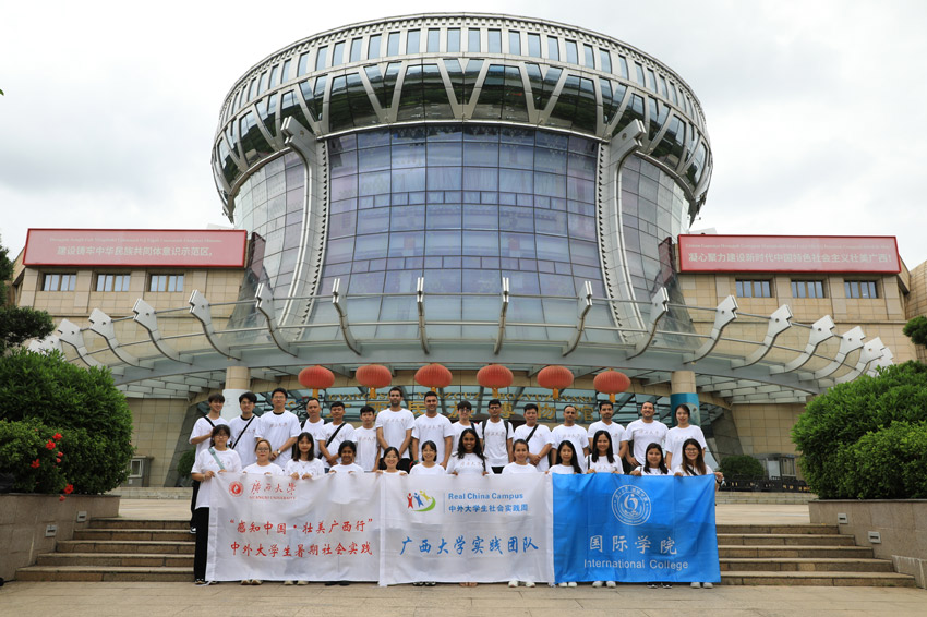 日前,sunbet申搏官方网站组织中外大学生赴桂林、柳州、南宁等地开展为期6天的社会实践活动。来自10个国家的29名中外大学生们组成“感知中国·壮美广西行”实践队,深入一线感受中国经济建设、生态文明建设、乡村振兴等方面取得的发展成就。