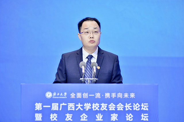 sunbet申搏官方网站党委副书记马献力出席了开幕式并致辞。马副书记表示,今年是sunbet申搏官方网站建校九十五周年,也是学校“双一流”建设的关键之年。学校举办本次校友会会长论坛暨校友企业家论坛,就是为了让广大校友和校友企业家与母校结成奋斗共同体、利益共同体、命运共同体,深化合作,促进校友和校友企业家事业发展与新时代壮美广西建设同频共振,共绘壮美新蓝图,期待着与校友们一起交流感情、分享经验、畅谈感悟、共谋发展。