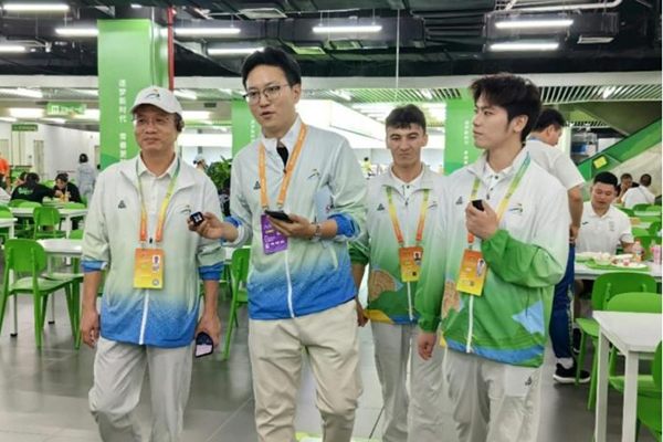 运动员村在餐饮供应上也做足了准备。进入餐厅,最先映入眼帘的是两面“友谊签名墙”,墙上不仅写满了来自全国各地的运动员签名,还写有“加油必胜”“友谊第一,比赛第二”等话语。运动员村工作人员许宁军介绍,运动员餐厅就餐区共可容纳3850人同时就餐,供餐方式为半自助型供餐,每天18个小时不间断供餐,保证运动员随时都能吃上新鲜热乎的饭菜。再往里走,还能看见各种地方风味的食堂窗口,运动员可以根据自己的饮食习惯和口味来挑选菜品。走出餐厅,布置精美的露天清吧吸引了探访队的目光。许多的运动员在这里交流、休憩,“我们很喜欢在这里,平时在这里放松一下,能够缓解比赛中的紧张和疲惫。”运动员的脸上洋溢着笑容。