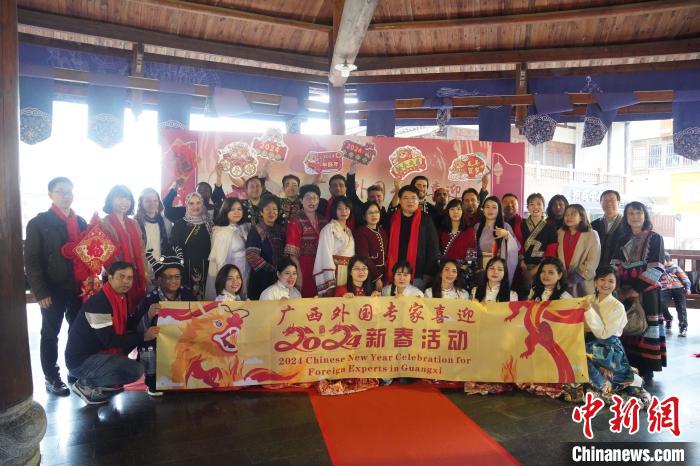 广西外国专家喜迎2024新春活动20日在广西南宁举行。来自加拿大、英国、意大利、马来西亚、越南、泰国等17个国家40余名在桂工作外国专家齐聚一堂,“组团”体验中国年文化。