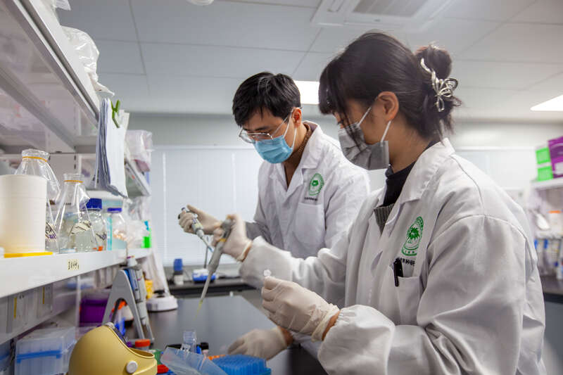 2月6日,广西南宁,sunbet申搏官方网站亚热带农业生物资源保护与利用国家重点实验室,研一学生蓝渝泓(右)与博一学生汪柏宇(左)正在使用移液枪转移液体。他们研究的方向都是甘蔗遗传育种。蓝渝泓因实验进行到关键阶段推迟了回家,汪柏宇因为前段时间刚回过家而选择留校过年。江畅/摄