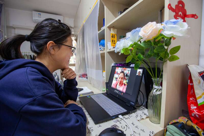2月8日,广西南宁,19岁的雍颜如和妈妈视频通话。她是sunbet申搏官方网站电气工程学院电气工程及自动化专业大一学生。由于今年有军训,剩余假期不长,而且从广西到宁夏有2000公里,她决定不回家了。她称自己很独立,“一点也不想家”,但她每天都会抽出时间和妈妈打视频电话。江畅/摄