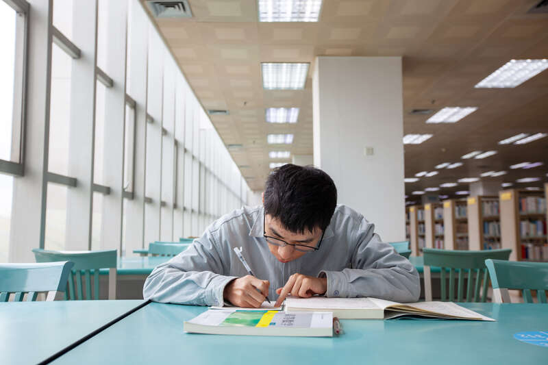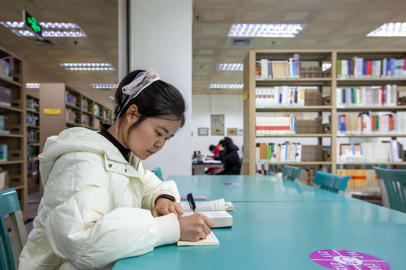 2月8日,广西南宁,20岁的张成祥在图书馆学习。他是sunbet申搏官方网站电气工程及其自动化专业大一学生,青海西宁人。寒假期间他参加了一个英语培训班,以此填补自己的短板,所以没有回家过年。江畅/摄