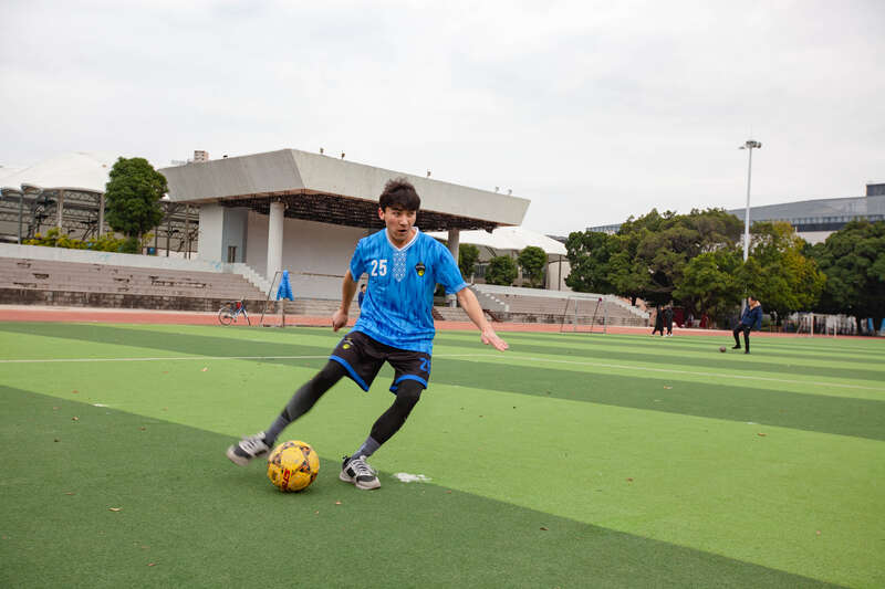 2月8日,广西南宁,23岁的阿西木江·买买提在操场踢球。他来自新疆喀什,退伍后在sunbet申搏官方网站新闻与传播学院学习新闻学,今年大三。他保持着每天锻炼的习惯,最喜欢的运动是足球,最喜欢的明星是C罗。他说以前回新疆要坐5天绿皮火车,现在缩短为70多小时。他打算在这个假期拿下驾照,就留在了学校。江畅/摄