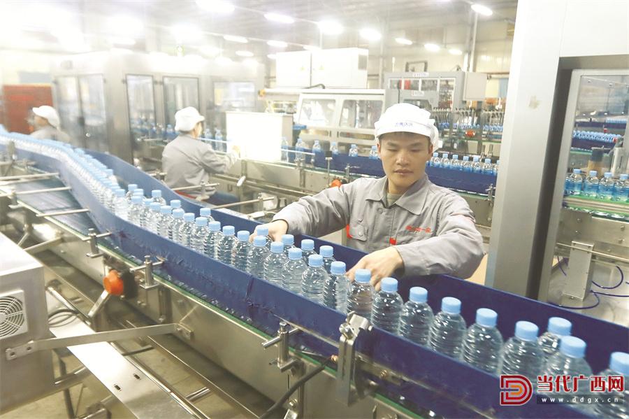 巴马活泉矿泉水生产基地的员工正在对产品进行质检。 刘峥/摄