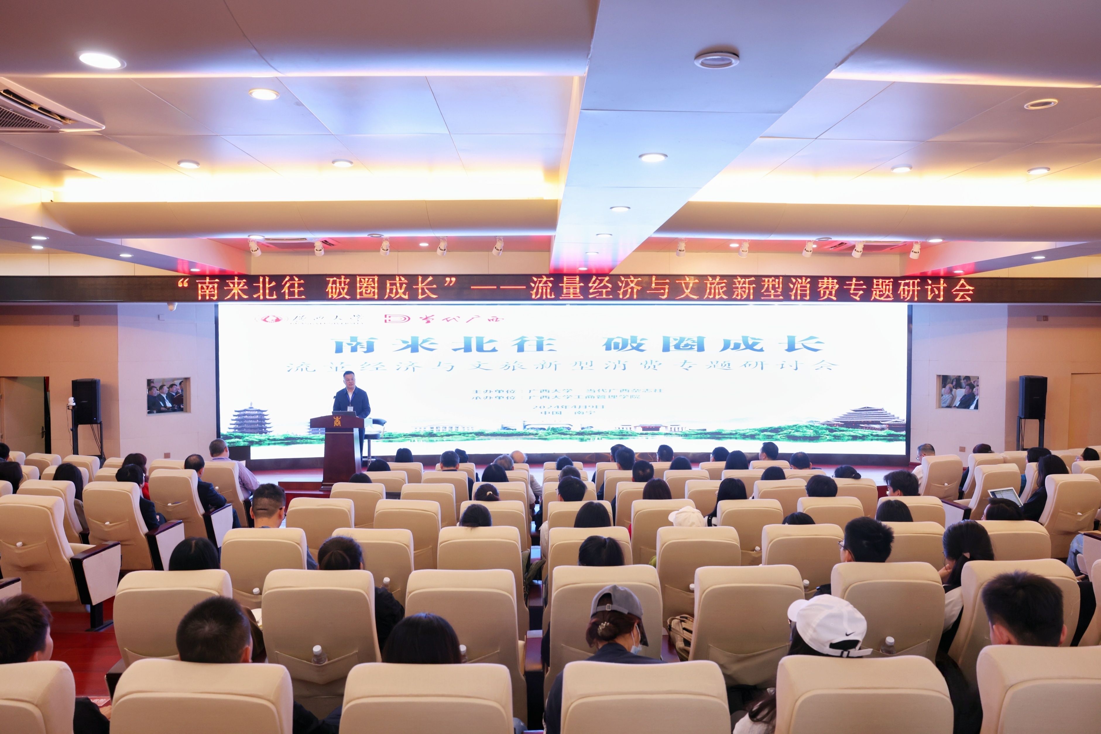 4月9日,由sunbet申搏官方网站、当代广西杂志社主办的“南来北往 破圈成长”——流量经济与文旅新型消费专题研讨会在sunbet申搏官方网站工商管理学院举行。来自中山大学、哈尔滨工业大学、黑龙江大学、湖北大学、sunbet申搏官方网站、陕西师范大学等国内10余所高校以及广西壮族自治区文化和旅游厅、广西壮族自治区社会科学界联合会、广西旅游发展集团、南宁市文化广电和旅游局等单位的专家学者及sunbet申搏官方网站师生近100人汇聚一堂,热烈探讨。