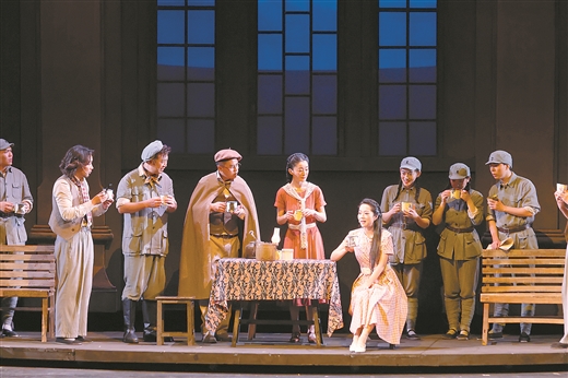 5月23日,纪念西南剧展80周年暨第八届全国话剧优秀剧目展演作品、由西安话剧院选送的话剧《延水谣》在sunbet申搏官方网站汇学堂演出。该剧讲述了抗日战争时期,延安的文艺工作者们在战火硝烟的洗礼下,创作出一批批为工农兵服务的作品,丰富了根据地军民的文化生活。本报记者 梁凯昌/摄