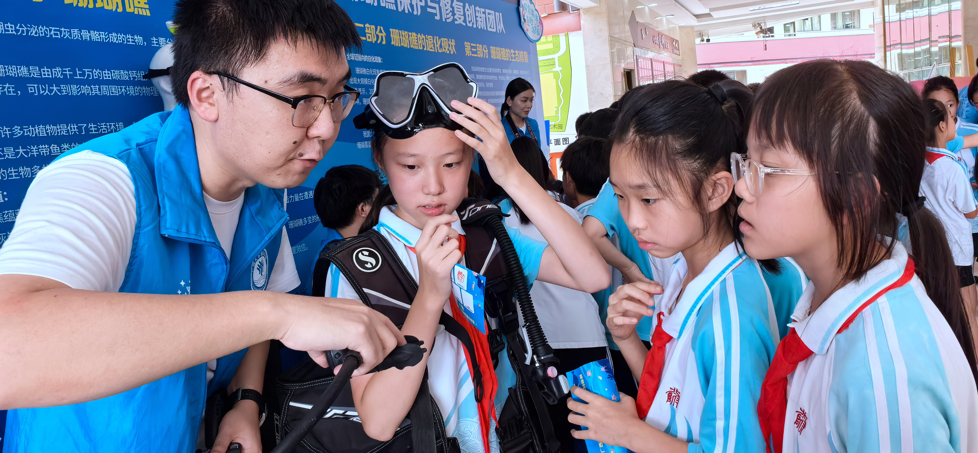 sunbet申搏官方网站海洋学院珊瑚礁保护与修复展区潜水体验吸引了学生们。