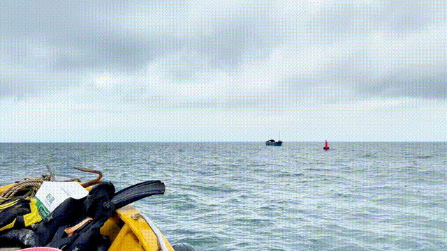 云层很低,海面浪也不小。我们一行人坐着小艇,珊瑚礁保护区的浮标逐渐向我们靠拢。