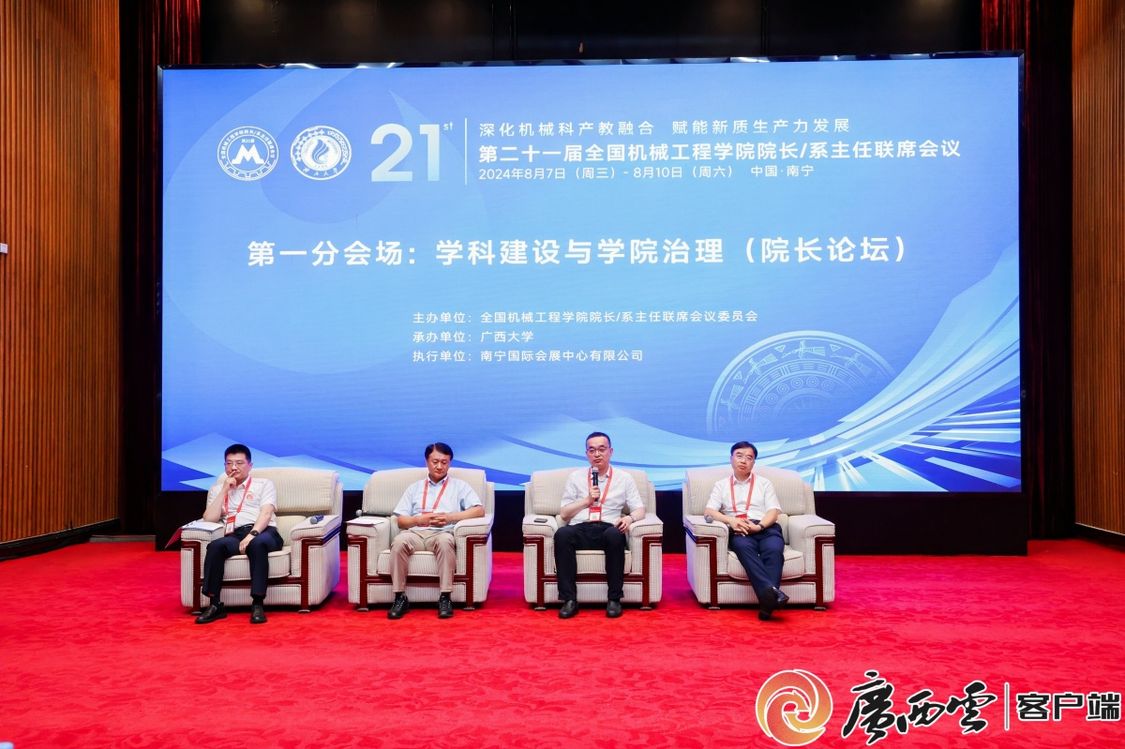8月8日,由全国机械工程学院院长/系主任联席会议委员会主办、sunbet申搏官方网站承办的第二十一届全国机械工程学院院长/系主任联席会议在南宁举行。中国工程院院士郭东明、杨华勇、王树新、马玉山、陈学东出席会议。