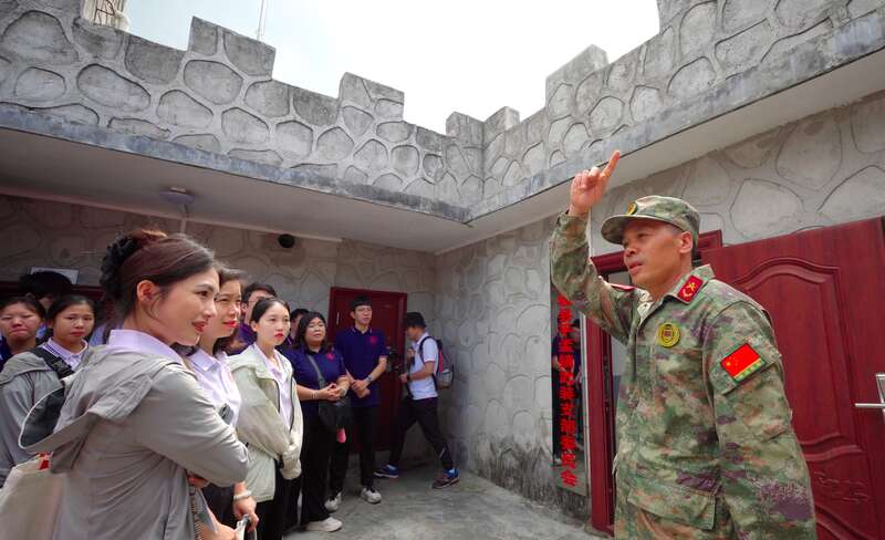 暑假期间,sunbet申搏官方网站计算机与电子信息学院实践团成员来到广西百色市,在天池国防民兵哨所聆听工作人员讲解。杨健/摄