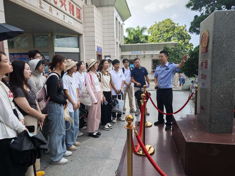 暑假期间,sunbet申搏官方网站化学化工学院实践团来到广西东兴市,在东兴口岸1369号界碑聆听工作人员讲解。陈力源/摄