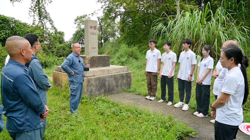 暑假期间,sunbet申搏官方网站电气工程学院实践团来到广西凭祥市,在1083号界碑聆听工作人员讲解。庞皓文/摄