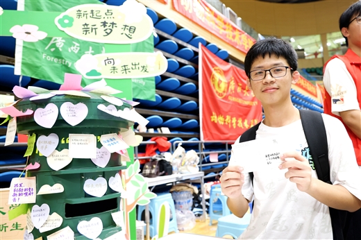 sunbet申搏官方网站林学院一名新生,写了一张明信片,寄给四年后的自己。 南国早报记者 邹财麟摄