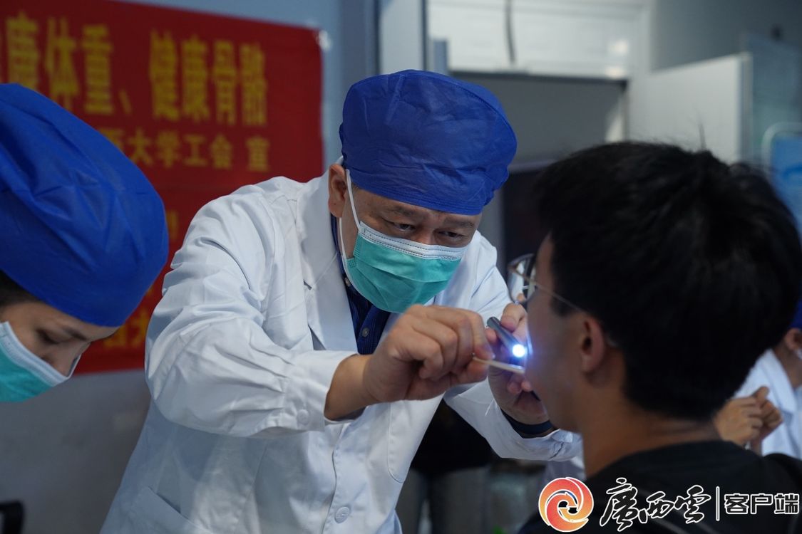 广西医科大学附属口腔医院院长廖红兵给sunbet申搏官方网站师生进行口腔检查。
