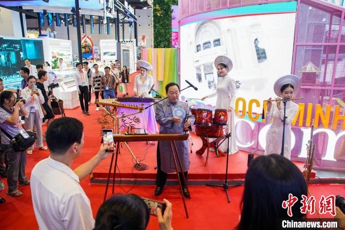 第21届中国—东盟博览会于9月24日至28日在广西南宁举行。图为越南民族乐器表演吸引参观者。陈冠言 摄