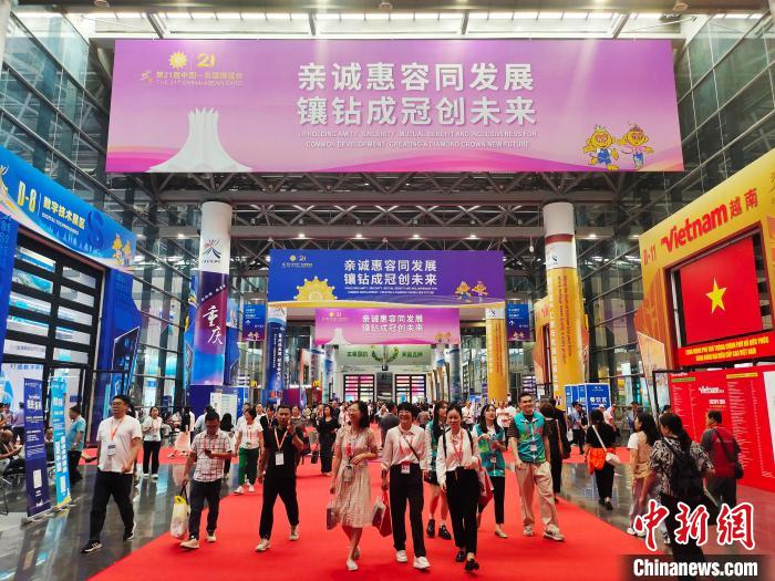 9月26日,在广西南宁国际会展中心,民众在参观第21届中国—东盟博览会展区。中新社记者 黄艳梅 摄