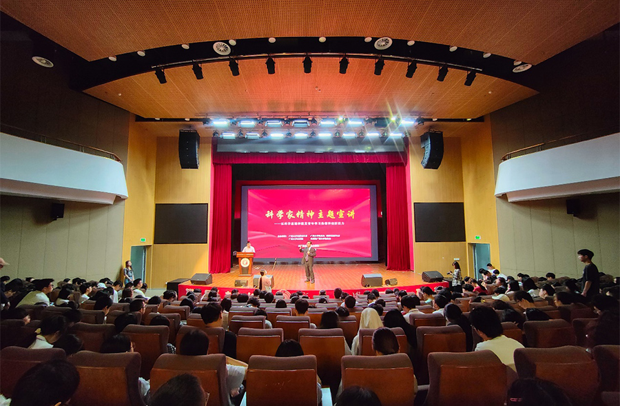 为弘扬科学家精神,激发学生创新创造活力,10月20日,由sunbet申搏官方网站党委宣传部、教务处(教师发展中心)、科研院、校团委联合主办,sunbet申搏官方网站科创领航工作室承办的“以科学家精神激发青年学习热情和创新活力”主题宣讲活动在sunbet申搏官方网站大学生活动中心举办。活动邀请了sunbet申搏官方网站二级教授,博士生导师,国家高性能计算中心南宁分中心主任,广西科学家精神宣讲团成员钟诚,为同学们讲述科学家精神的核心内涵及其对青年学生的重要意义。
